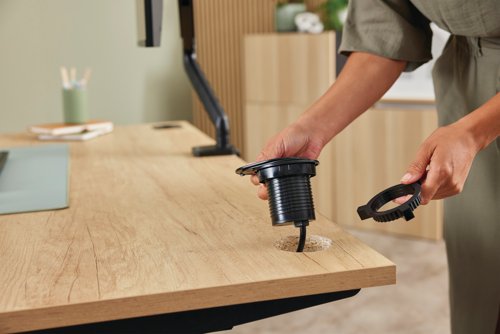 Bring power seamlessly into your workspace with this compact, recessed desk outlet designed for easy access and minimal disruption. Featuring a single 230v power socket and a USB-C port with up to 30W output, it's ideal for charging devices without clutter. The unit fits neatly into standard 60mm or 80mm grommet holes, making installation straightforward. Its discreet design helps eliminate bulky adapters and tangled cables, keeping your desktop clean and organised. A sliding cover protects the ports from dust and debris, and hides the unit when not in use. With a generous 2-metre power cable and plug, setup is flexible and hassle-free.