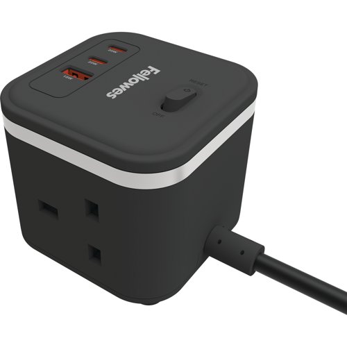 This compact Power Cube offers a space-saving solution for powering multiple devices while keeping your workspace neat and organised. Its cube-shaped design helps prevent plug overcrowding, giving each device the room it needs. Equipped with three 230v power sockets, one USB-A port (up to 18W), and two USB-C ports (up to 20W), along with a convenient on/off switch, it's a versatile option for charging and powering tech. Ideal for use in homes, offices, meeting rooms, and shared spaces, it comes with a generous 2-metre power cable for flexible placement and easy setup.