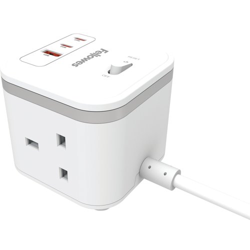 Fellowes Power Cube 3x230v 1xUSB-A 2x USB-C Socket 2m Cable White - 100137166